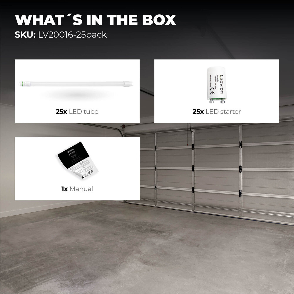 25x Tubo LED 150 cm - 28W - 6500K - 185 Lm/W - Alta eficiencia - Clase B