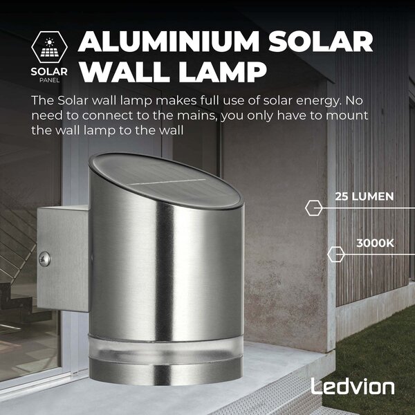 Aplique de Pared Exterior Solar LED - Aluminio - Acero Inoxidable - 3000K - IP44