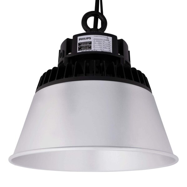 Esta lámpara LED profesional High Bay ha sido fabricada con la mejor calidad y utiliza un controlador LED de Philips. Los chips LED tienen una potencia lumínica de 175 lúmenes por vatio. Lo que llega a una potencia lumínica total de hasta 17.500 lúmenes. El color de luz de la High Bay LED es una luz blanca cálida (3000K).