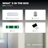 Esta luminaria de emergencia tiene un rendimiento lumínico de 150 lúmenes y consume solo 3,5 vatios, lo que la hace muy eficiente en términos energéticos. Además, tiene una vida útil de >50.000 horas de funcionamiento. Por lo tanto, puedes estar seguro de tener iluminación de emergencia durante los próximos años. Si hay algún problema con la electrónica, esta luminaria de emergencia de escape tiene una garantía de hasta 3 años.